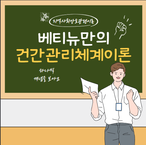 지역사회 간호 관련 이론에 여러가지 이론들이 있습니다. 그 중 베티뉴만의 건강관리체계이론에 대해서 자세히 알아보겠습니다. 건강관리체계의 주요개념, 예방단계를 알아보고 지역사회 간호에 적용하는 방법을 보겠습니다.